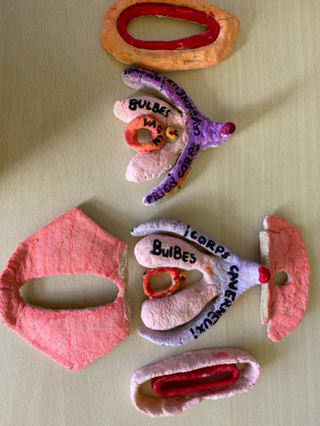 Rapide résumé historique : Pendant mes interventions sur la sexualité, (je rappelle que c’est une obligation et une loi du code de l’éducation Article L 312-16*) j’ai vu que certains élèves ne comprenaient pas mon discours complètement. J’ai donc remis mon processus en question et j’ai décidé d’apporter du concret. J’ai commencé par une pâte à sel faite maison. Puis un jour elle s’est cassée dans mon sac, j’ai donc continué avec une pâte à modeler en espérant qu’elle soit plus solide ce qui fût le cas, mais cela restait encore risqué…